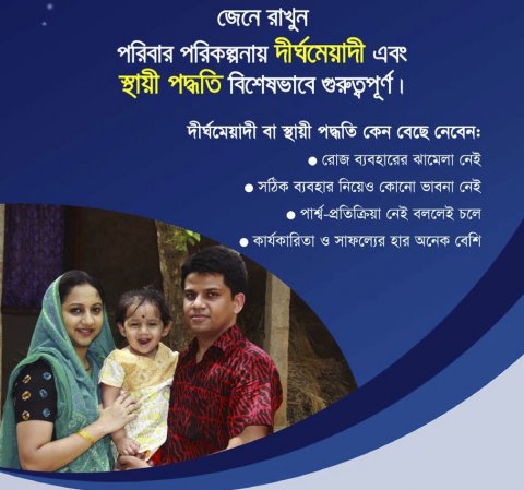 অস্থায়ী পদ্ধতিঃ¨খাবার বড়ি ¨কনডম ¨ইনজেকশন (FWA)মাঠকর্মীরা বাড়ি বাড়ি ঘুরে সরবরাহ করে থাকে।