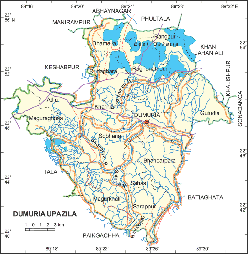 খুলনা জেলার ডুমুরিয়া উপজেলার ১৩ নং গুটুদিয়া ইউনিয়ন পরিষদ মানচিত্রে অবস্থিত।